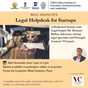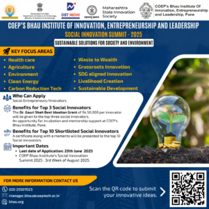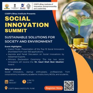 Social Innovation Summit 2025August 22, 2025 Mentoring Clinic on: “Strategies for Global Protection: From Patents to Design and Trademarks”July 24, 2025 COEP Bhau Institute’s: Social Innovation Summit 2025May 19, 2025 Join us for the National Startup Day celebration at COEP’s Bhau Institute of Innovation, Entrepreneurship and Leadership!January 9, 2025 Legal Helpdesk for StartupsNovember 18, 2024 Mentoring Clinic On Igniting and Shaping Ideas By Ravi AroraOctober 18, 2024 Exclusive Session on Mental Health and Work-Life BalanceOctober 18, 2024 COEP’S Bhau Institutes Social Innovation SummitAugust 8, 2024 August 1, 2024 Load More